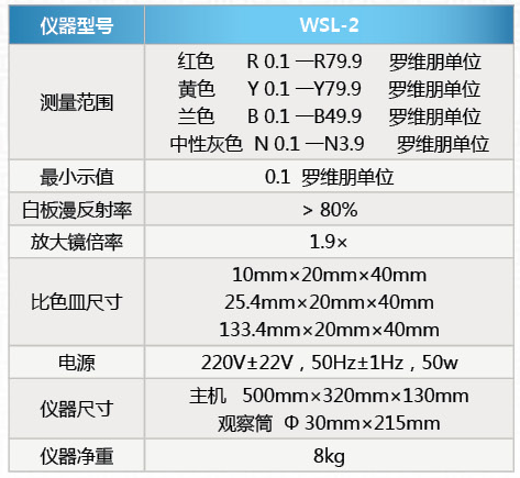 | 關(guān)鍵字 | 范圍:紅0.1~79.9羅維朋單位 黃0.1~79.9羅維朋單位 藍(lán)0.1~49.9羅維朋單位 中型色澤:0.1~3.9羅維朋單位 最小讀數(shù):0.1羅維朋單位 |