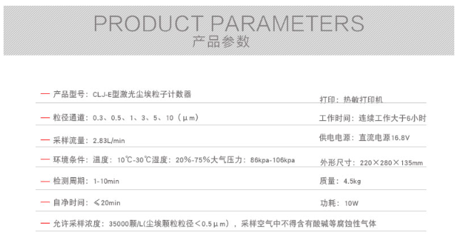 4、可測塵埃濃度:≤30萬顆/2.83升