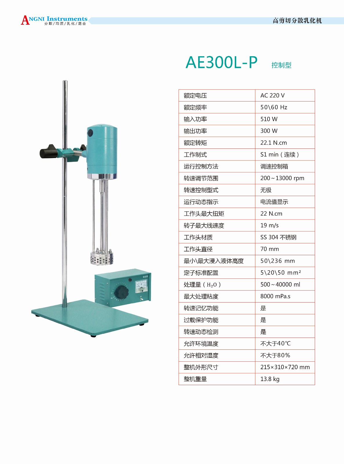 - 商品名稱:上海昂尼高剪切分散乳化機(jī)AE300L-P