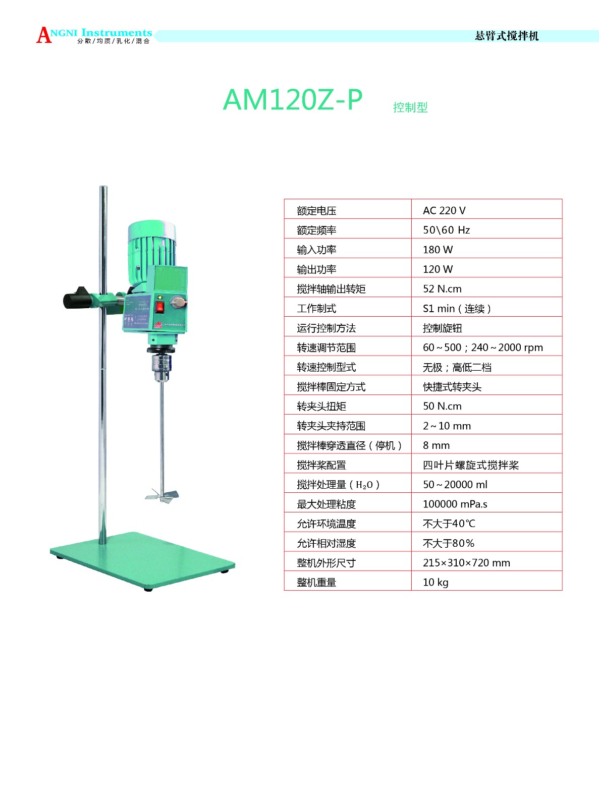 AM120Z-P實驗室攪拌機采用結(jié)構(gòu)緊湊的微型電機驅(qū)動,適用于實驗室的低至中、高粘度液體的攪拌混合。