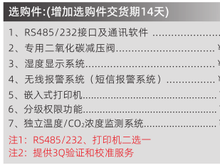 ● 可選配外置的獨立溫度和CO2濃度監(jiān)測系統(tǒng),實現(xiàn)對箱體內(nèi)溫度和CO2濃度的雙重監(jiān)測;