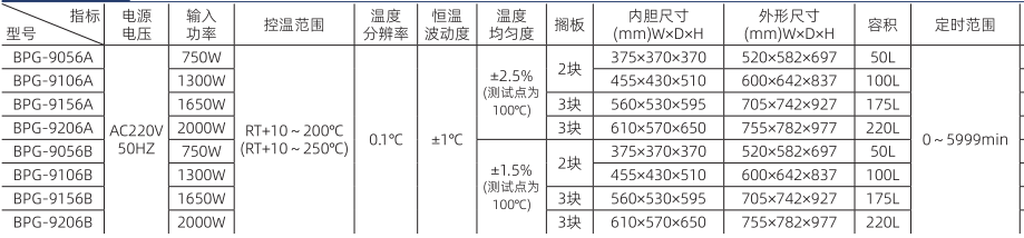 注:9006A系列均勻度±2.5%; 9006B系列均勻度±1.5%