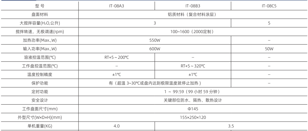 ● 防燙警示燈:A和B系列工作盤溫度超過50℃指示燈閃爍,提醒用戶工作盤及容器、溶液等高于50℃狀態(tài),不能觸碰;