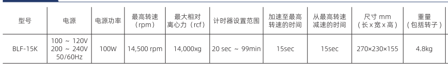 | 關(guān)鍵字 | 相對離心力:14000xg 最高轉(zhuǎn)速:14500rpm |