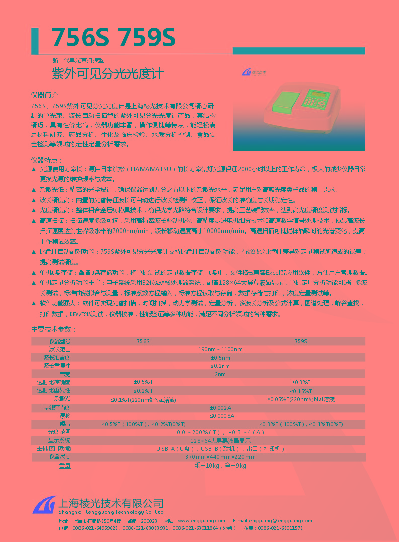 - 商品名稱:上海棱光紫外可見分光光度計759S