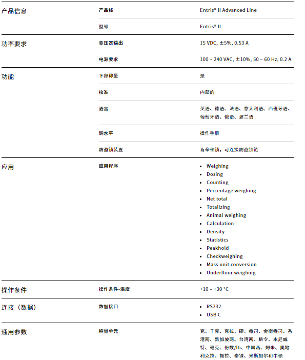 無論何種稱量任務,全新Entris? II BCE 天平始終都是您的正確之選。150 年的德 國工程專業(yè)知識,使得Entris? II BCE 具有出色的性能,它有兩種配置可供選擇,您能輕松找到滿足具體稱量需求的天平。Entris? II BCE 系列是同類產(chǎn)品中唯一一款最高性價比提供isoCAL、LED 觸摸屏 和 12 種內(nèi)置應用的天平。該天平有 40 多種型號,可輕松滿足您特定的稱重需求。繼續(xù)閱讀了解Entris? II BCE 為何是完成基本稱量任務的絕佳之選。