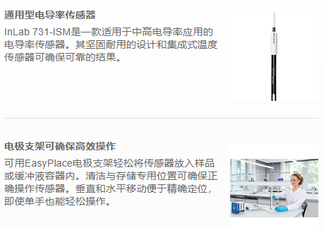 SD30電導(dǎo)率儀,配備InLab 731-ISM電導(dǎo)率/溫度傳感器,適用于中高電導(dǎo)率測(cè)量。該套件包括高效電極支架和電導(dǎo)率標(biāo)準(zhǔn)液,用于初始校準(zhǔn)。