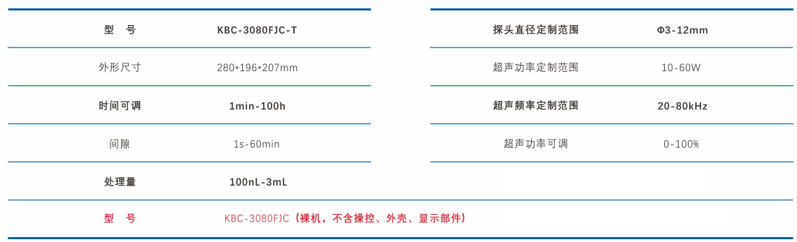 非接觸式超聲波處理器KBC-3080FJC型超聲波樣本處理器主要應(yīng)用于小劑量樣本處理,如體外診斷領(lǐng)域中對樣本的混勻、破碎、分散oni等該產(chǎn)品為“干法非接觸"式超聲處理器,其可以在不施加任何耦合劑的情況下僅通過接觸樣本容器外壁而將高頻超聲波能量傳入到樣本容器中對樣本進(jìn)行超聲處理