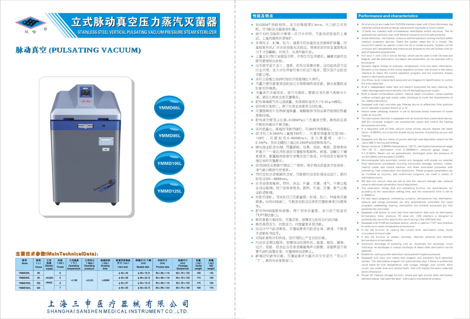 - 商品名稱:上海三申立式脈動真空壓力蒸汽滅菌器YMMD105L