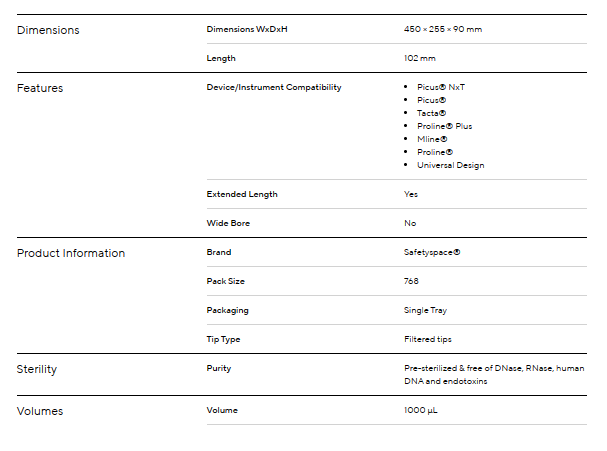 | 關(guān)鍵字 | 延長(zhǎng)型濾芯吸頭,1000 µl,預(yù)滅菌,盒裝(8x96)新產(chǎn)品,訂購(gòu)前請(qǐng)查詢(xún)匹配表 |