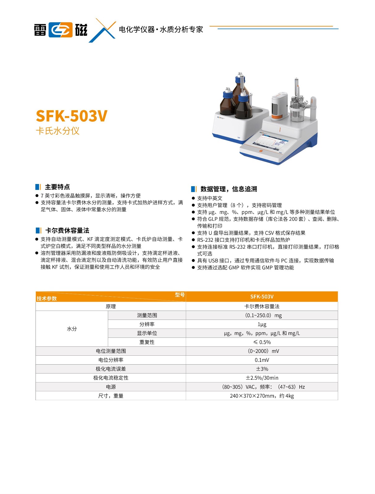 上海雷磁卡氏水分儀SFK-503V(容量法)