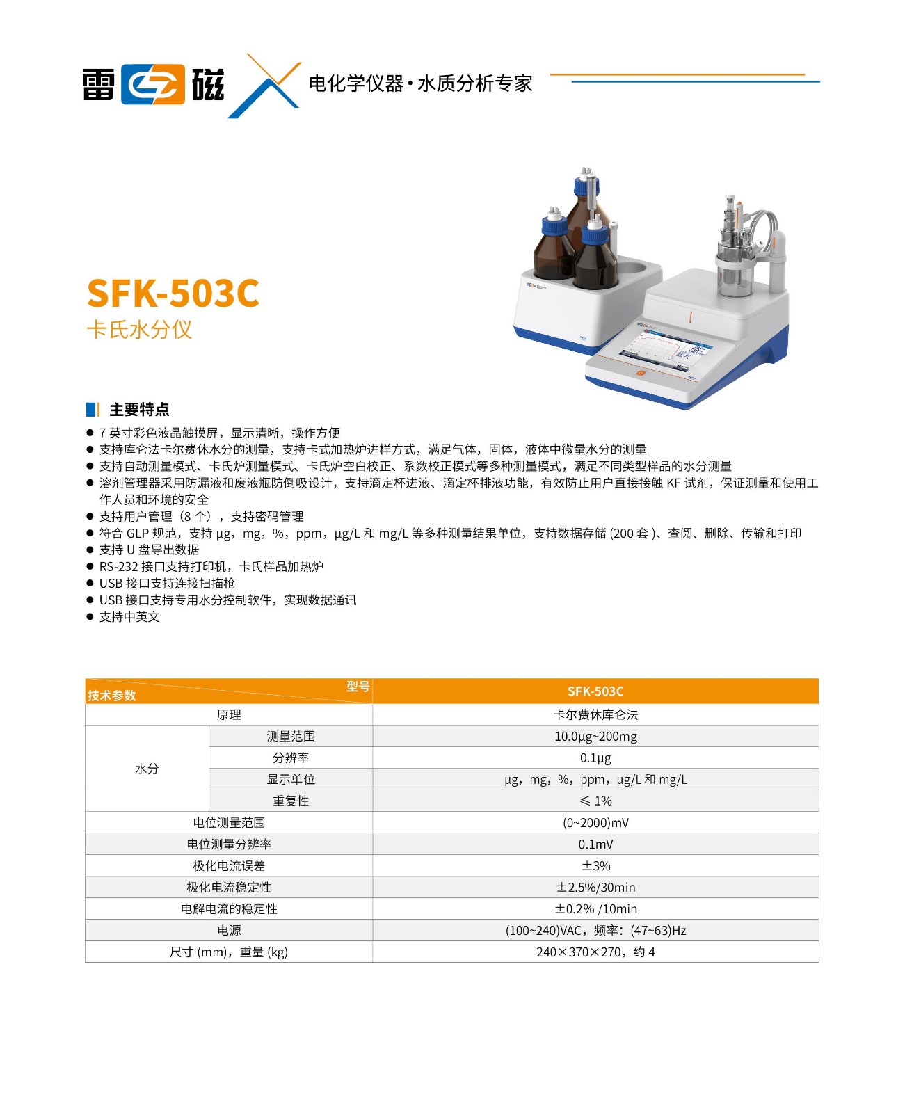 - 商品名稱:上海雷磁卡氏水分儀SFK-503C