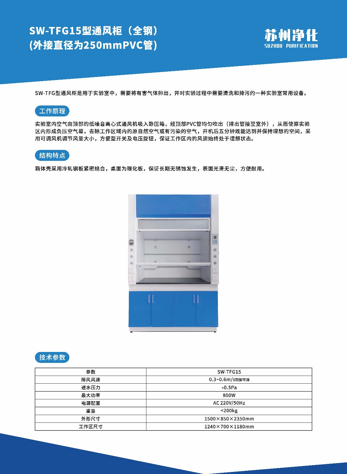 - 商品名稱:蘇州凈化通風(fēng)柜SW-TFG-15(全鋼)