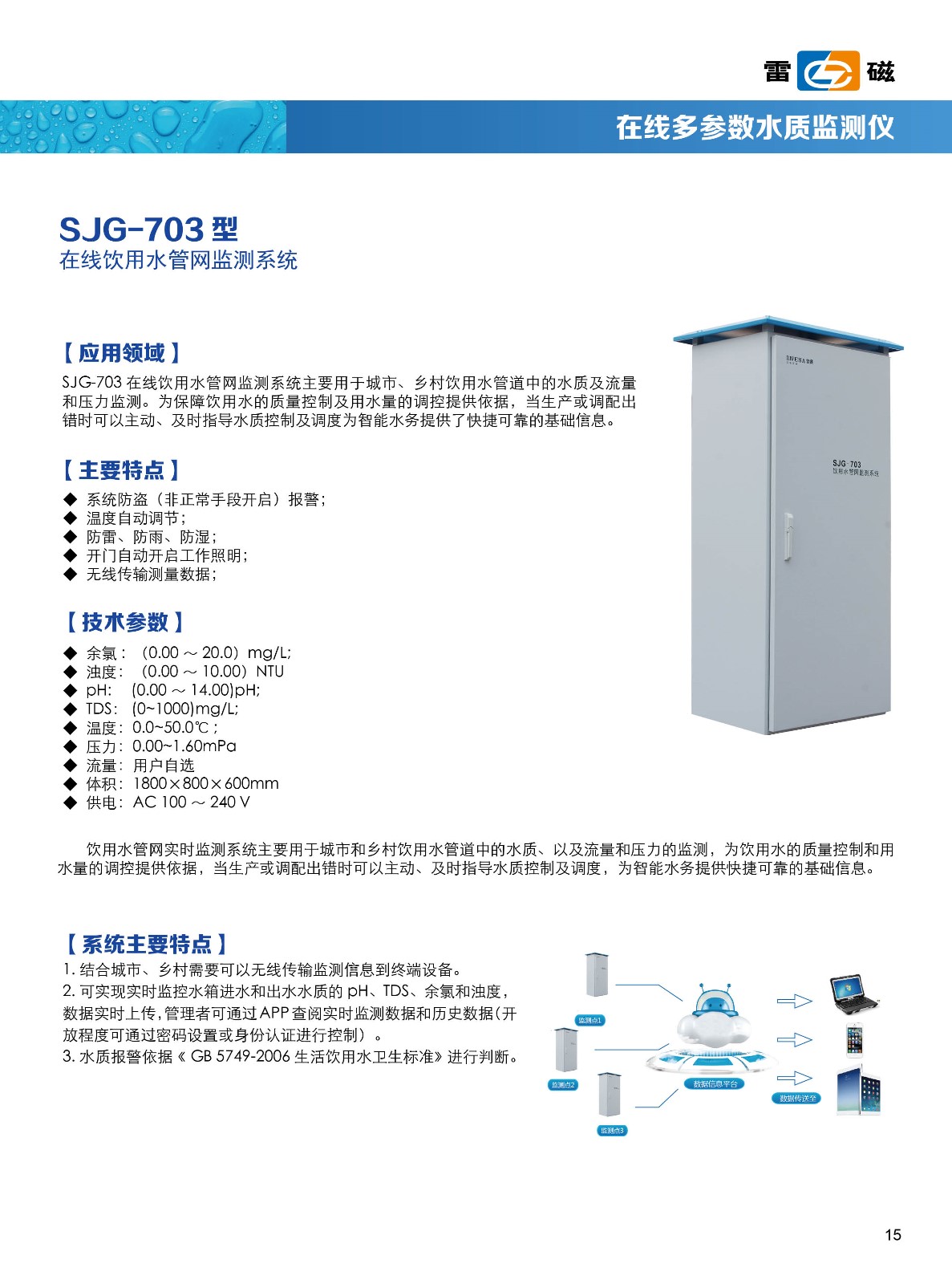 - 關(guān) 鍵 字: 監(jiān)測(cè)項(xiàng)目:濁度、總氯/余氯、pH、TDS、壓力、流量