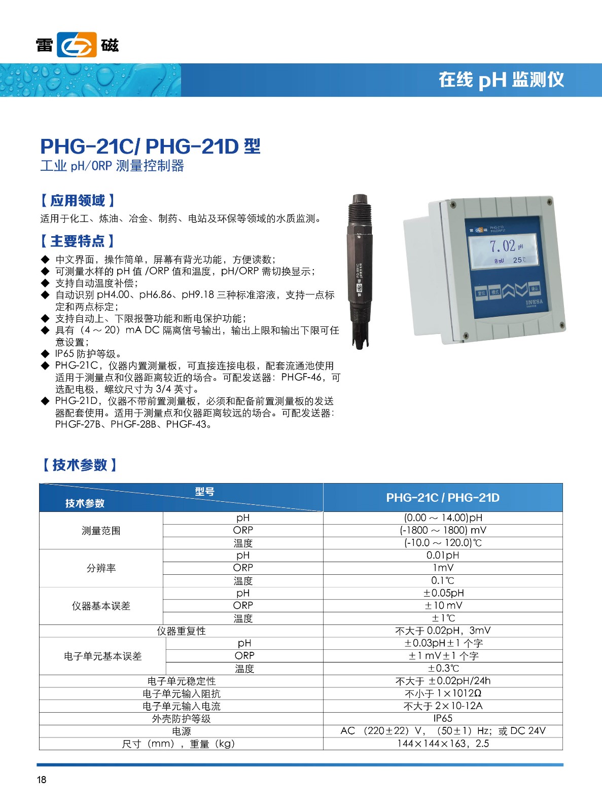 - 關(guān) 鍵 字: 測(cè)量范圍:ORP:(-1800~1800)mV;(0.00~14.00)pH;溫度:(-10.0~120.0)℃; (4~20)mA 電流輸出
