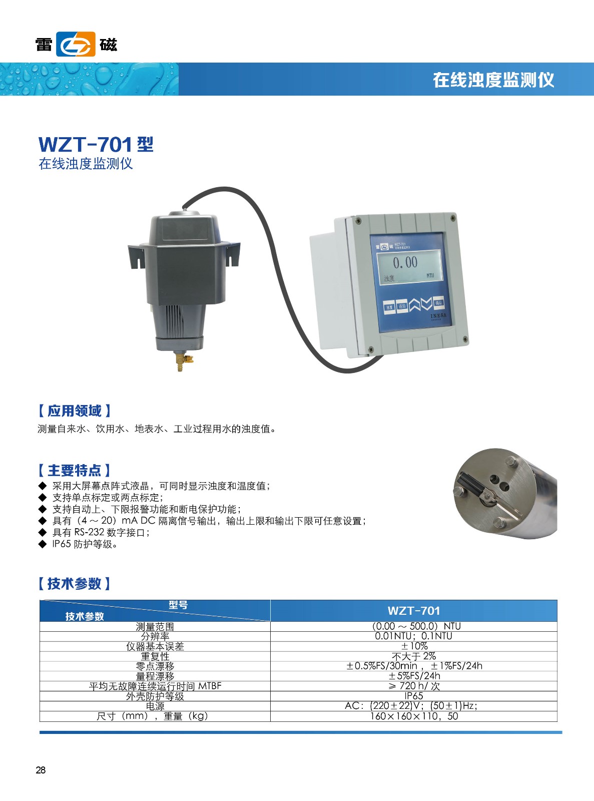 - 關(guān) 鍵 字: 測(cè)量范圍:0~500NTU ;4~20mA電流輸出