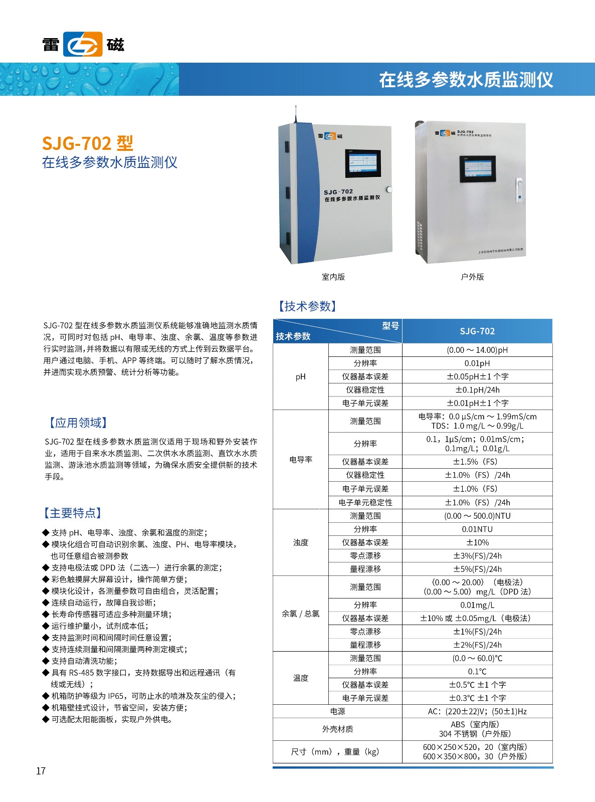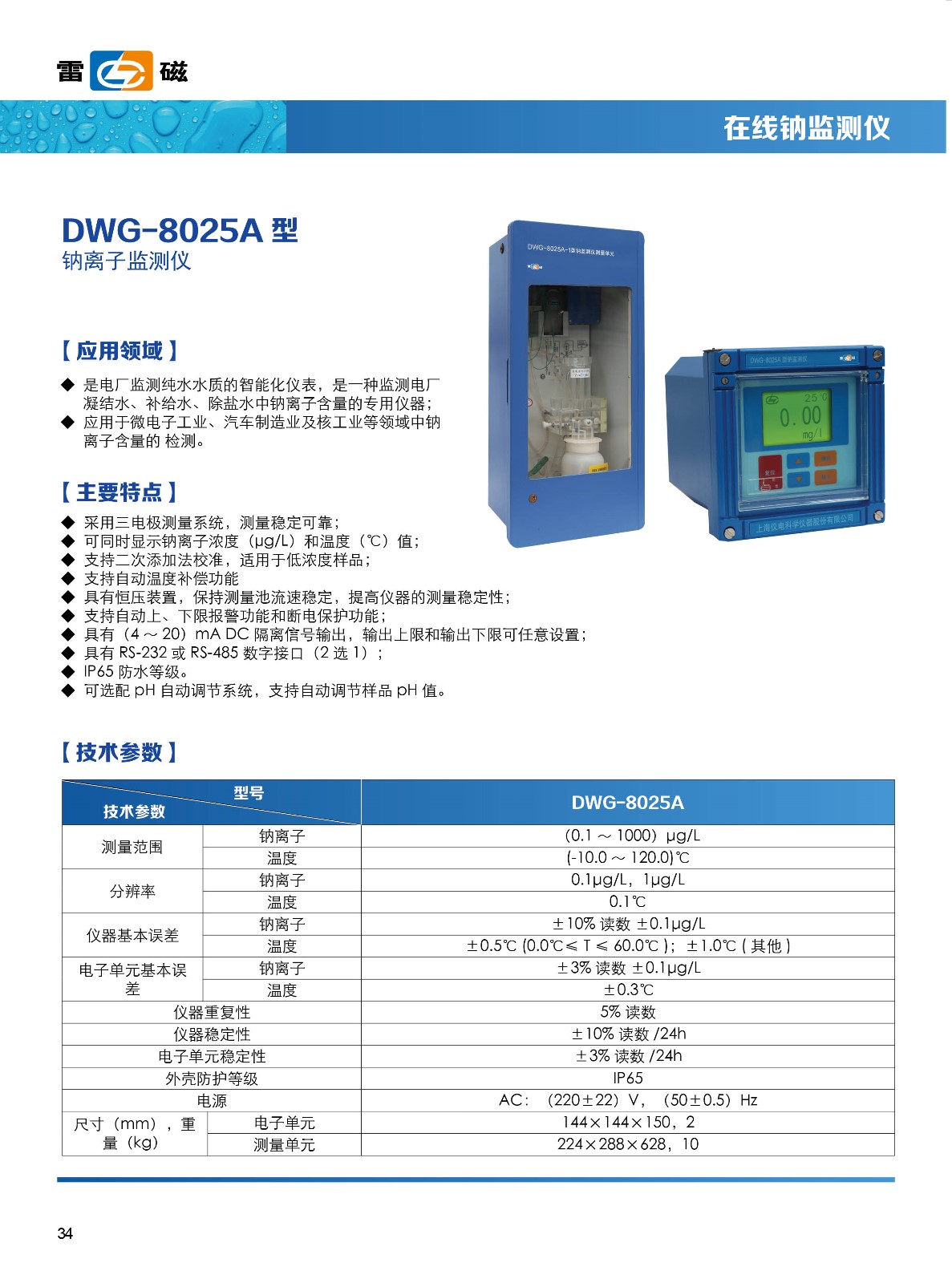 - 關(guān) 鍵 字: 測(cè)量范圍:鈉離子:(0.1~1000)μg/l溫度:(-10~120)℃