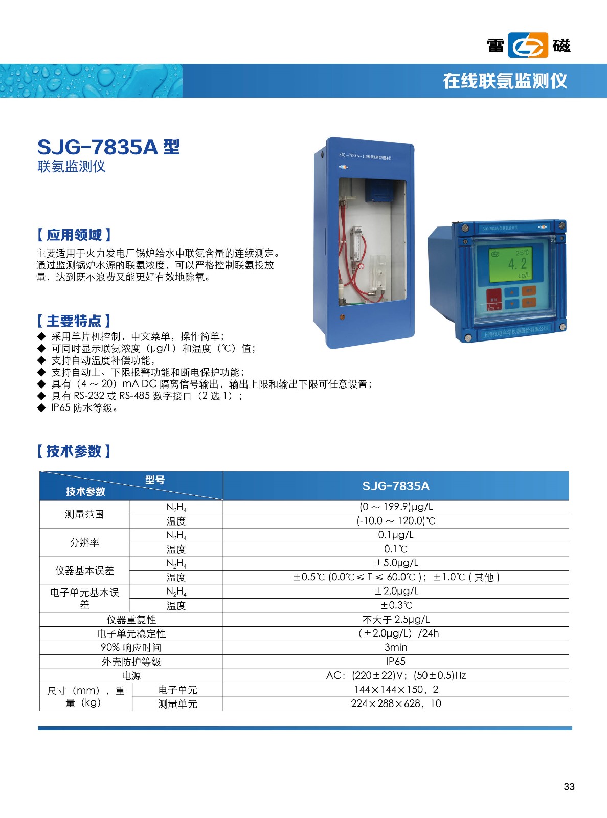 - 關(guān) 鍵 字: 測(cè)量范圍:聯(lián)氨:(0~199.9)μg/L;溫度:(-10.0~120.0)℃