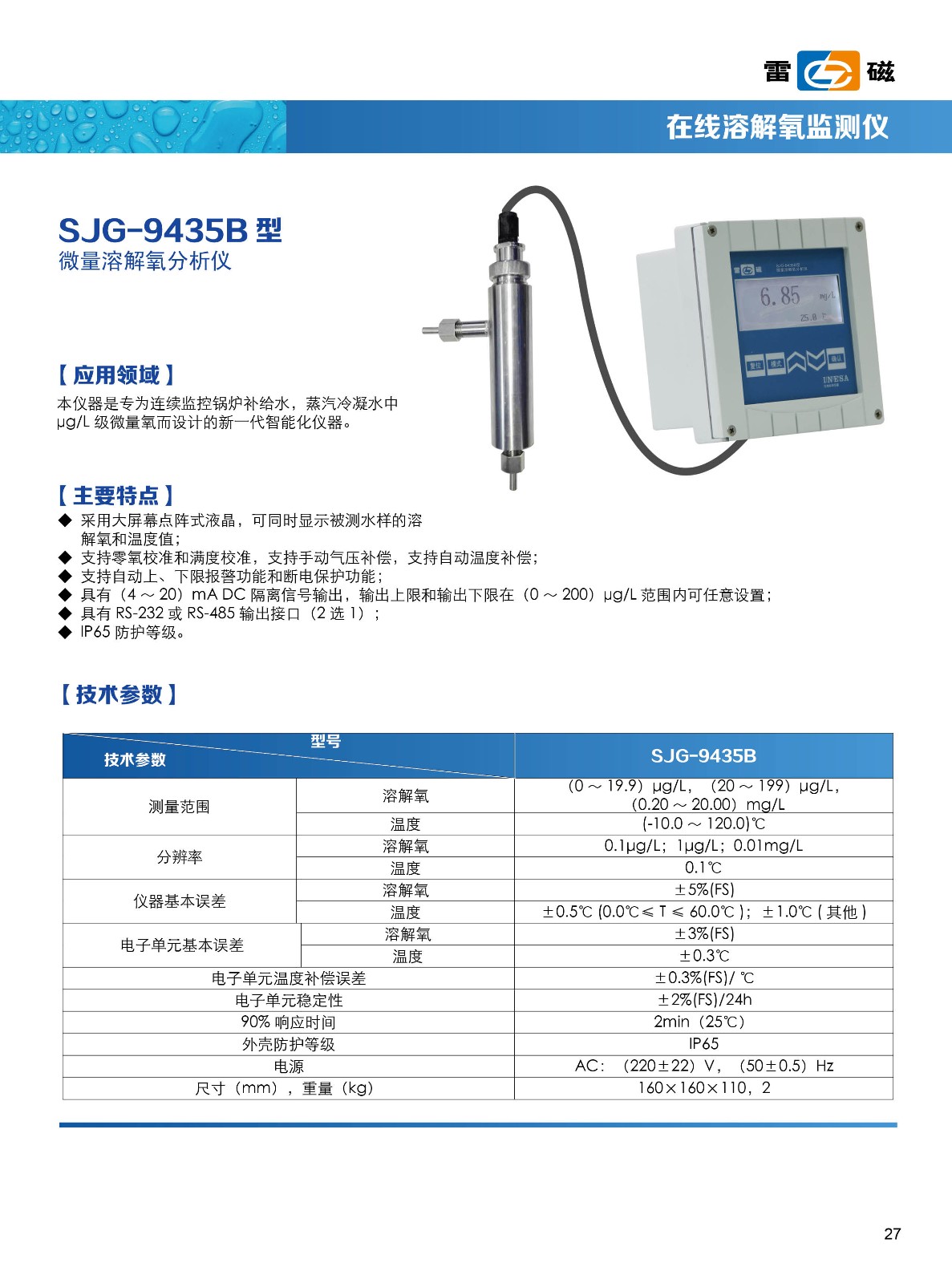 - 標(biāo) 題: 雷磁在線微量溶解氧分析儀SJG-9435B