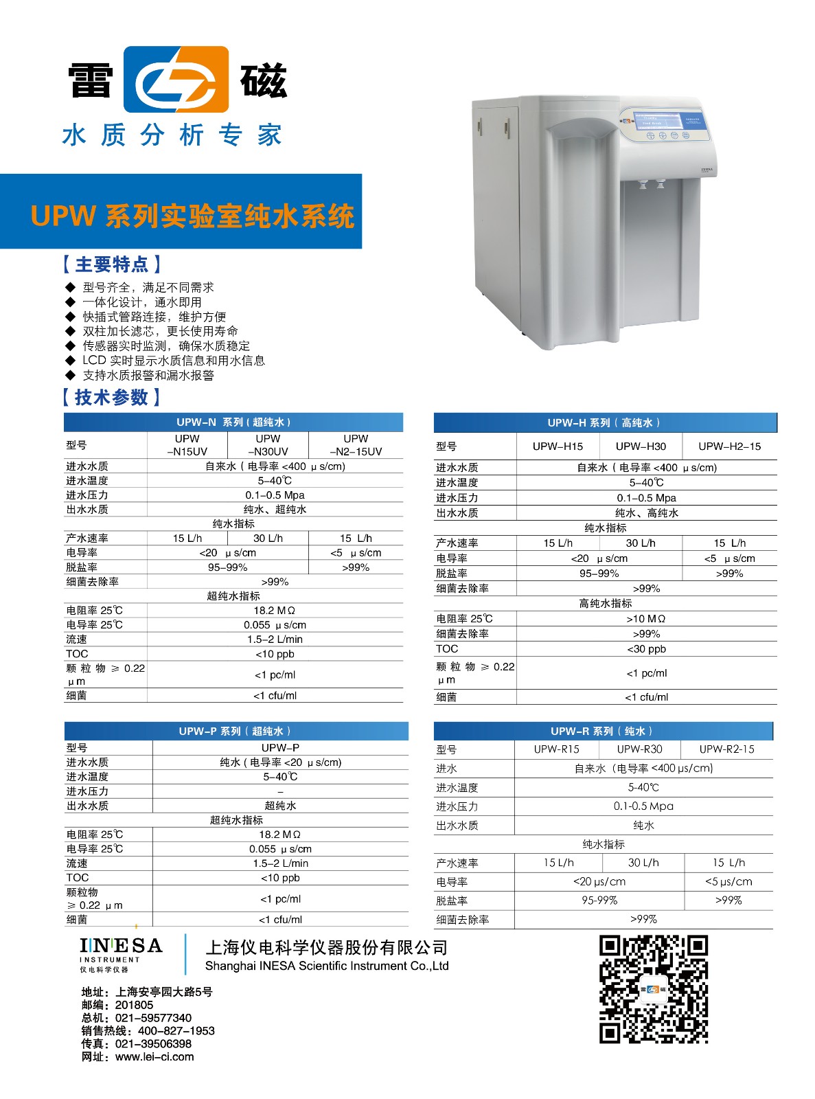 - 關(guān) 鍵 字: 進(jìn)水水質(zhì):自來(lái)水:電導(dǎo)率<400μs/cm 出水水質(zhì):純水:電導(dǎo)率<5μs/cm,脫鹽率>99%。超純水:電阻率>18.2 MΩ,TOC <10 ppb。 產(chǎn)水速率:15 L/h