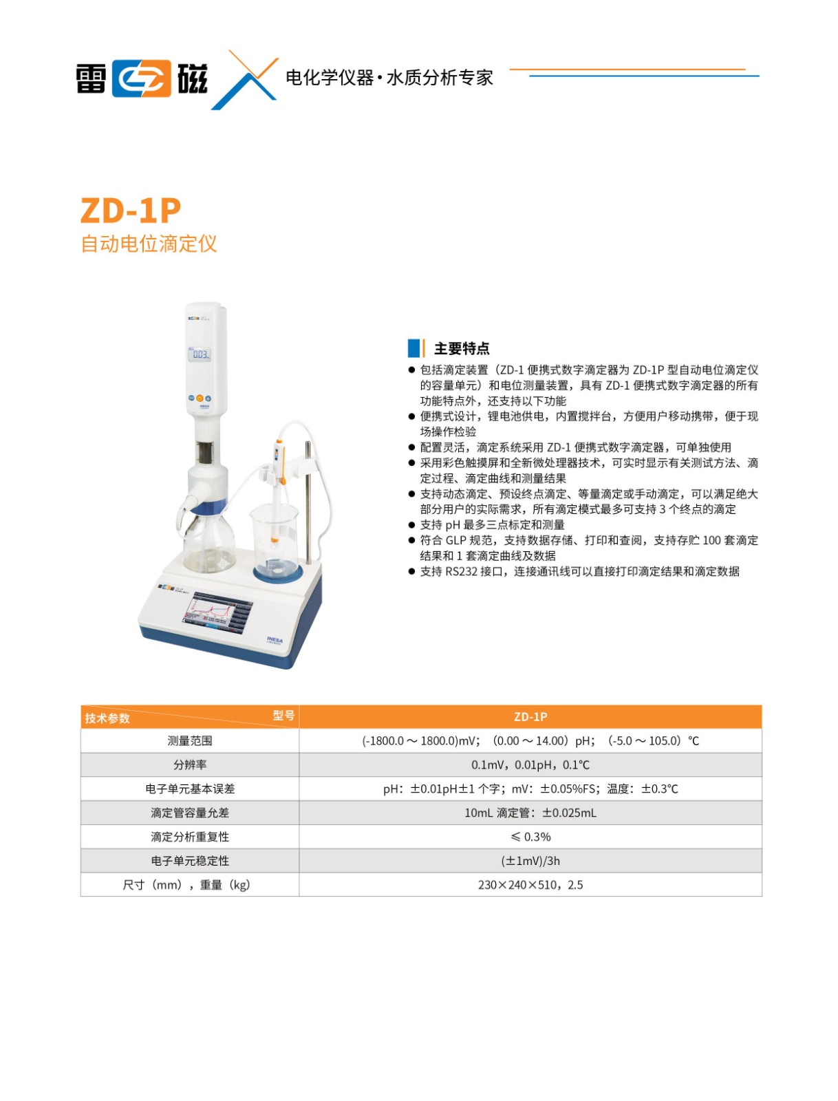 - 標(biāo) 題: 上海雷磁自動(dòng)電位滴定儀ZD-1P
