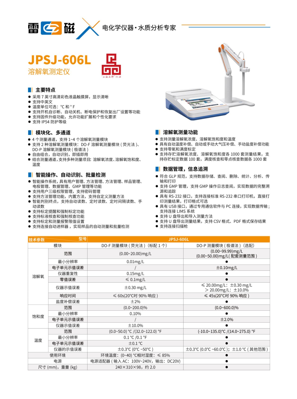 - 副 標 題: 臺式 溶解氧 升級版,熒光法 國產(chǎn)化替代優(yōu)選產(chǎn)品
