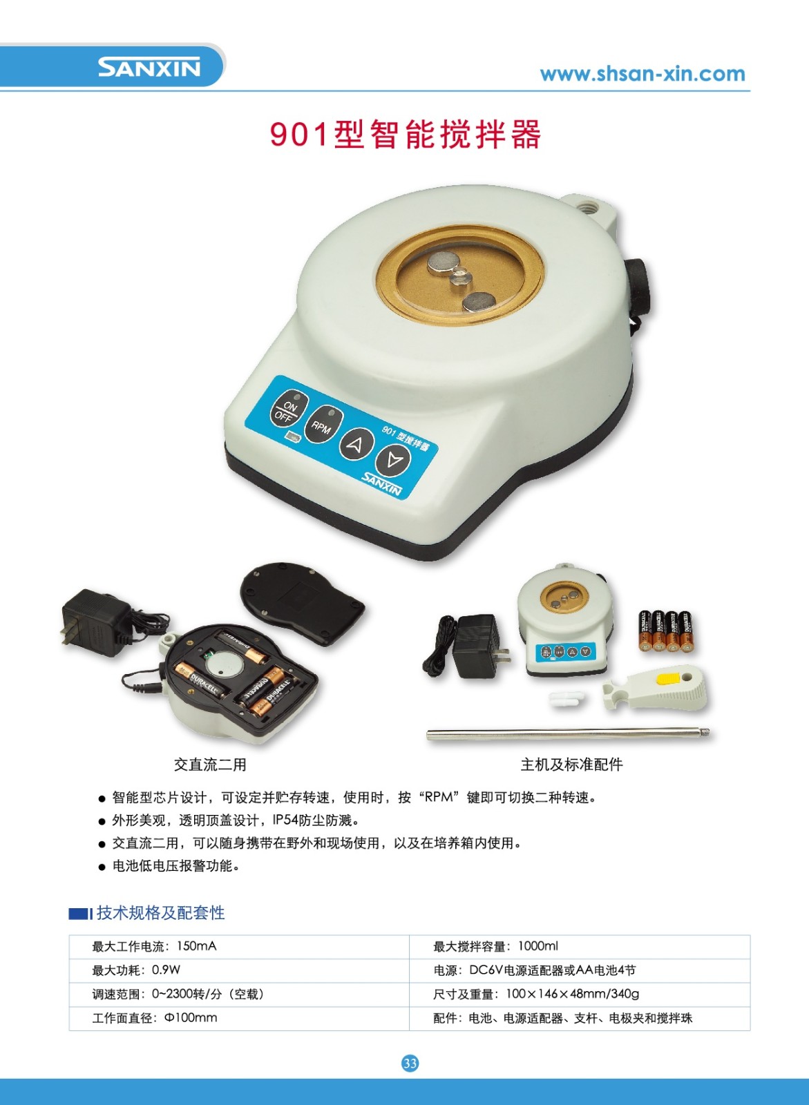 - 關(guān) 鍵 字: 調(diào)速范圍: 0~2300轉(zhuǎn)/分(空載), 最大攪拌容量:1000mL;工作面直徑:100mm; 電源: DC6V電源適配器或AA電池4節(jié)