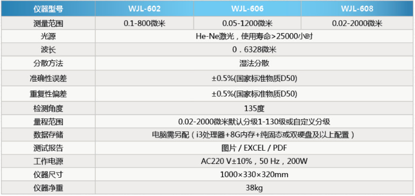 WJL激光粒度分析儀采用全量程米氏散射理論,充分考慮到被測顆粒和分散介質(zhì)的折射率等光學(xué)性質(zhì),根據(jù)大小不同的顆粒在名角度上散射光強的變化反演出顆粒群的粒度分布數(shù)據(jù)。適用于各種粉體、懸浮液和乳濁液的顆粒粒度測量分析,在化工、制藥、水泥、新材料、陶瓷、土壤等企事業(yè)單位及高等院校、科研部門及得到了廣泛的應(yīng)用,物光W兒系列激光粒度分析儀有干法、濕法和干濕二用、噴霉、顆粒圖像、粉塵形貌20多種型號供用戶選擇,符合ISO13320相關(guān)要求。