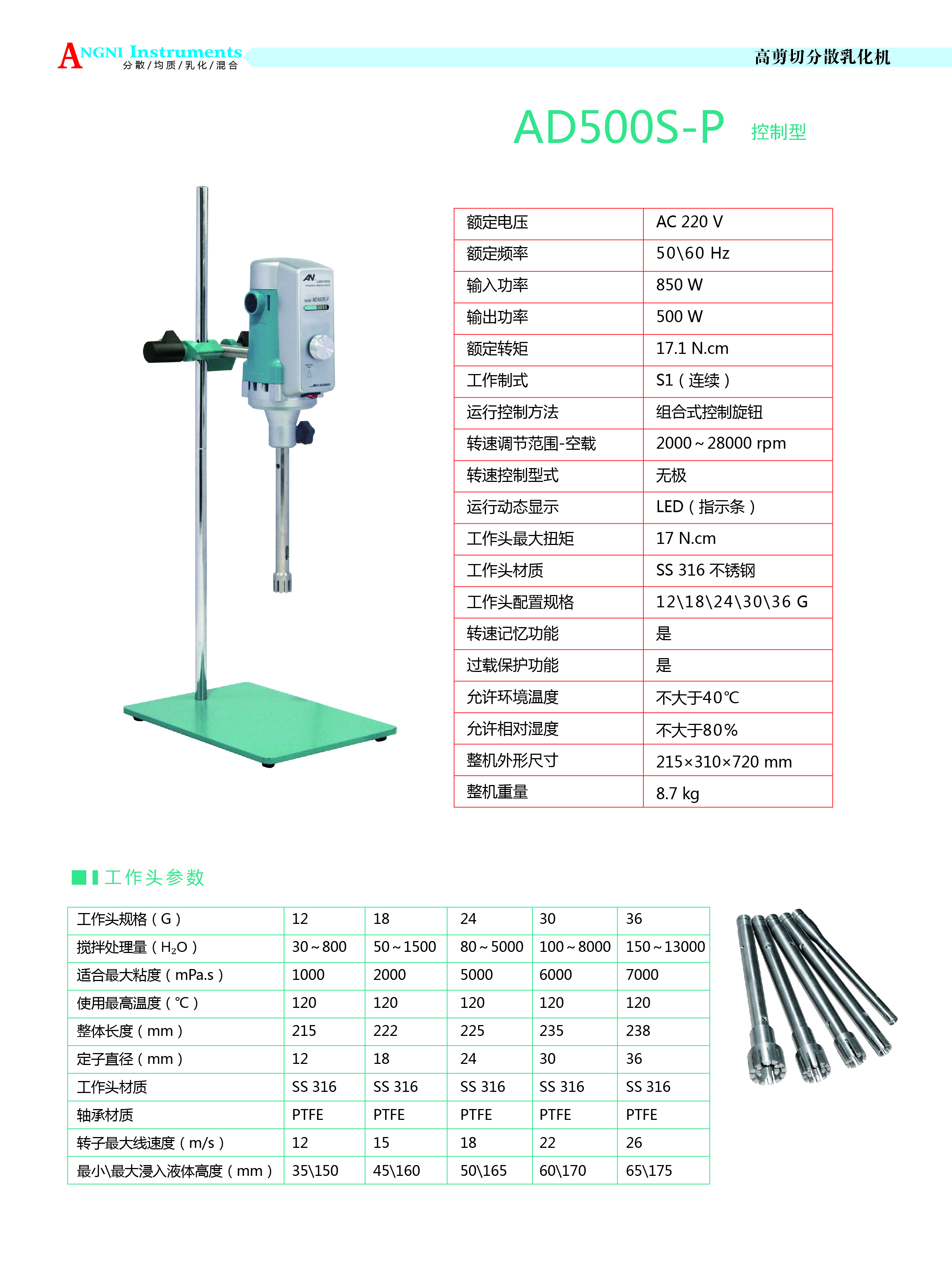 - 商品名稱:上海昂尼高剪切分散乳化機(jī)AD500S-P套裝三(停產(chǎn))