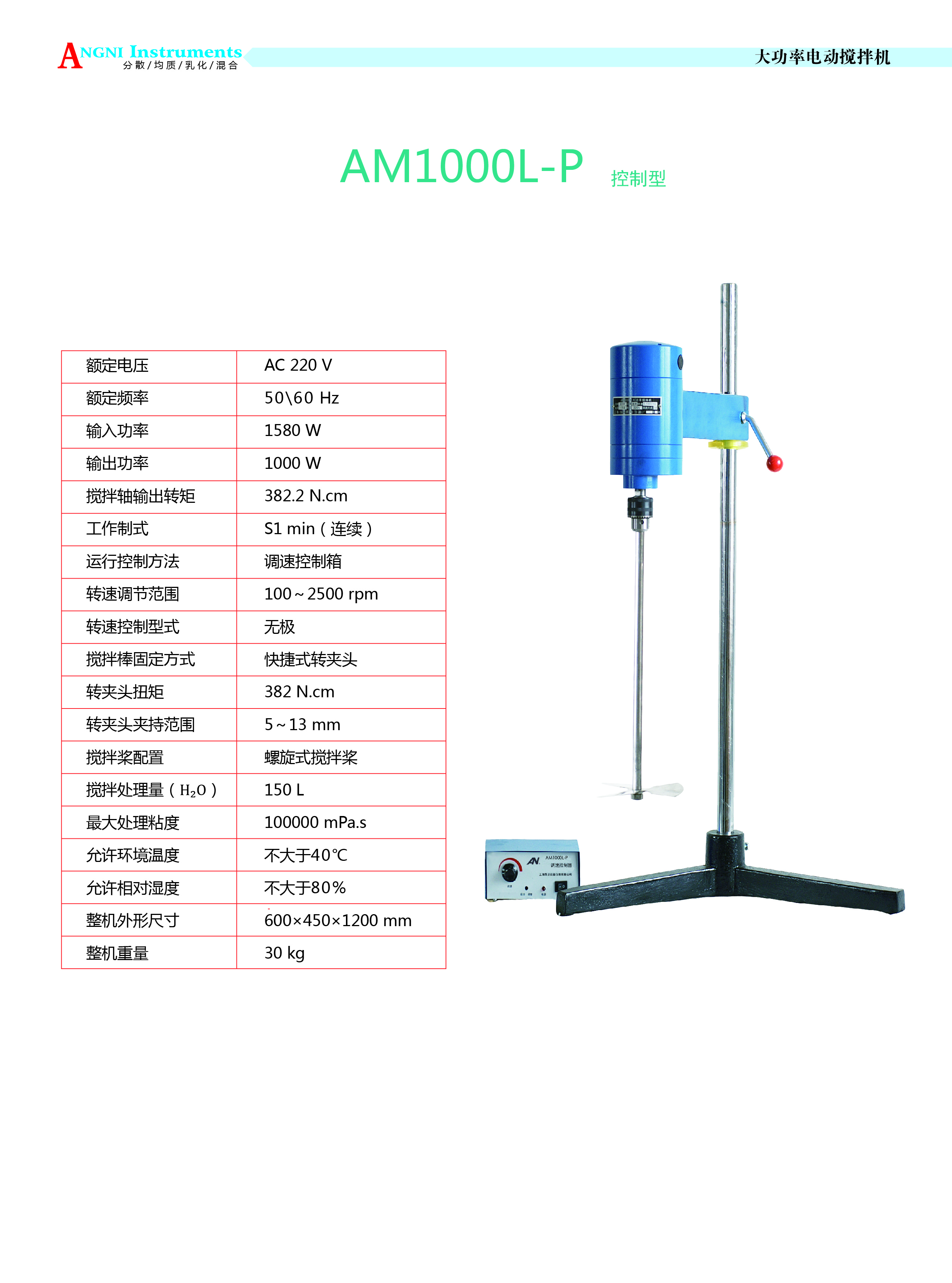 - 商品名稱:上海昂尼大功率攪拌機(jī)AM1000L-P(停產(chǎn))