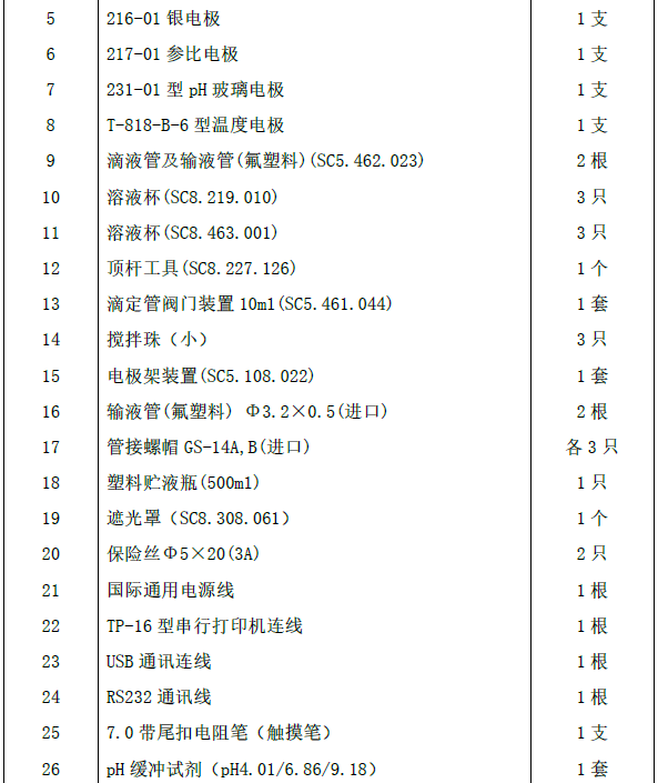 | 關(guān)鍵字 | 【ZDJ-5B-T型自動(dòng)滴定儀(單管路)】ZDJ-5B-T主機(jī)、電極支架、10mL滴定裝置、T-828型溫度電極、213-01鉑電極、216-01銀電極、231-01型pH玻璃電極 |