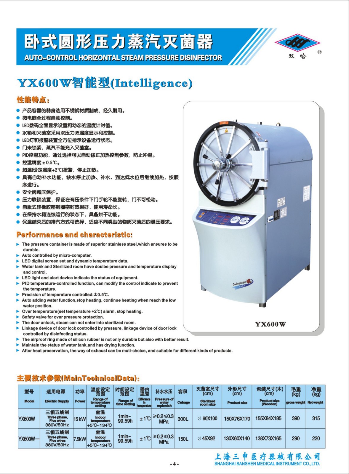 - 商品名稱:上海三申臥式圓形壓力蒸汽滅菌器YX600W-(停產(chǎn))