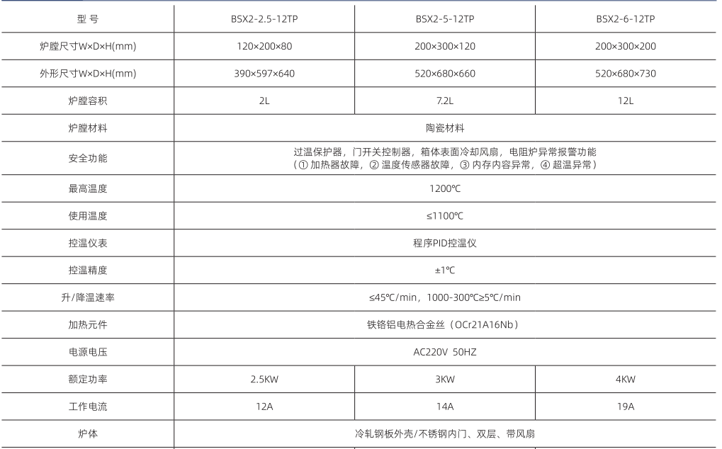 | 關(guān)鍵字 | 容積:2L 工作室尺寸:120×200×80mm 最高溫度:1200℃ |