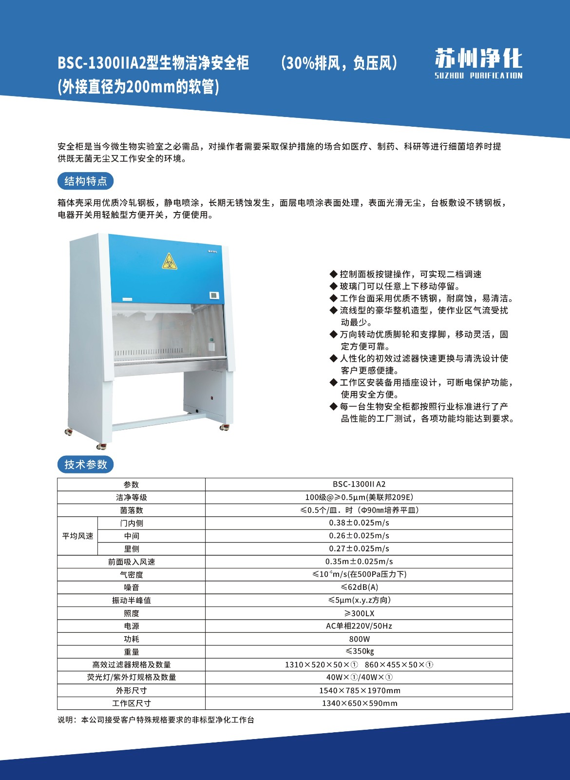 - 商品名稱:蘇州凈化生物安全柜BSC-1300IIA2
