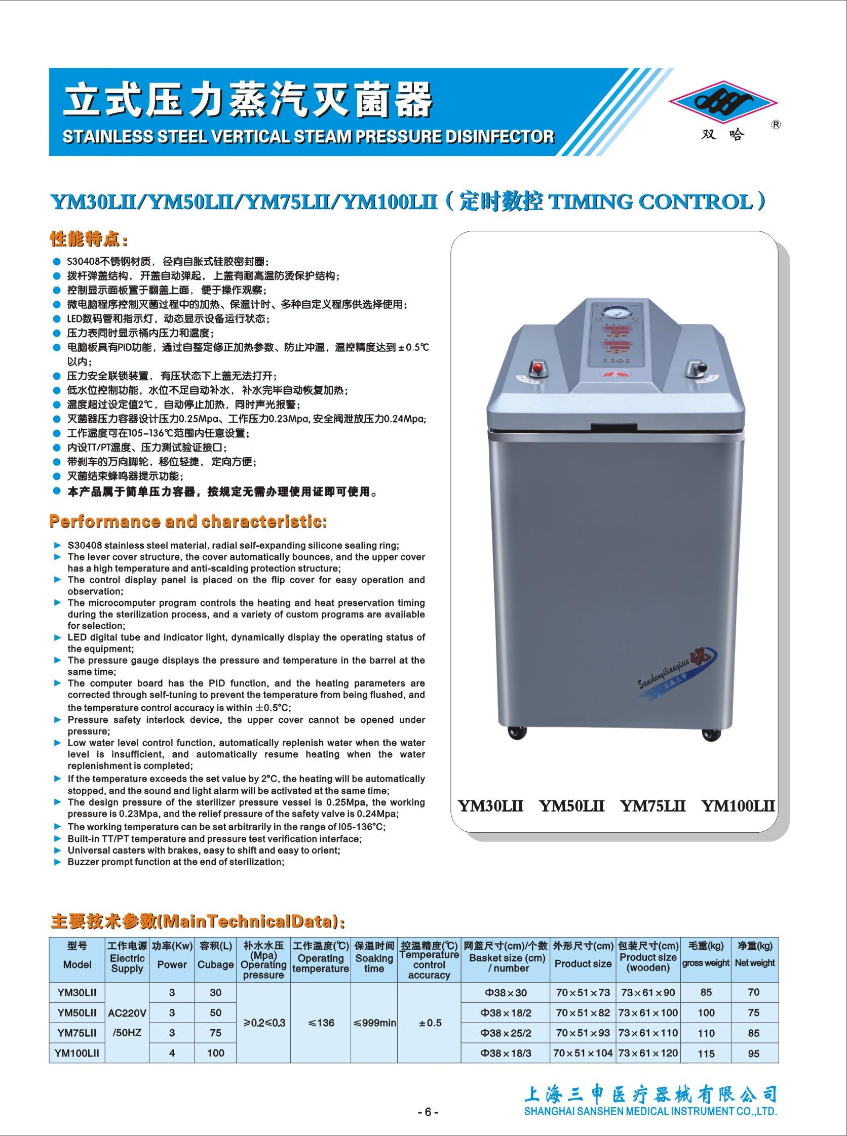 *上海三申立式壓力蒸汽滅菌器YM50LII
