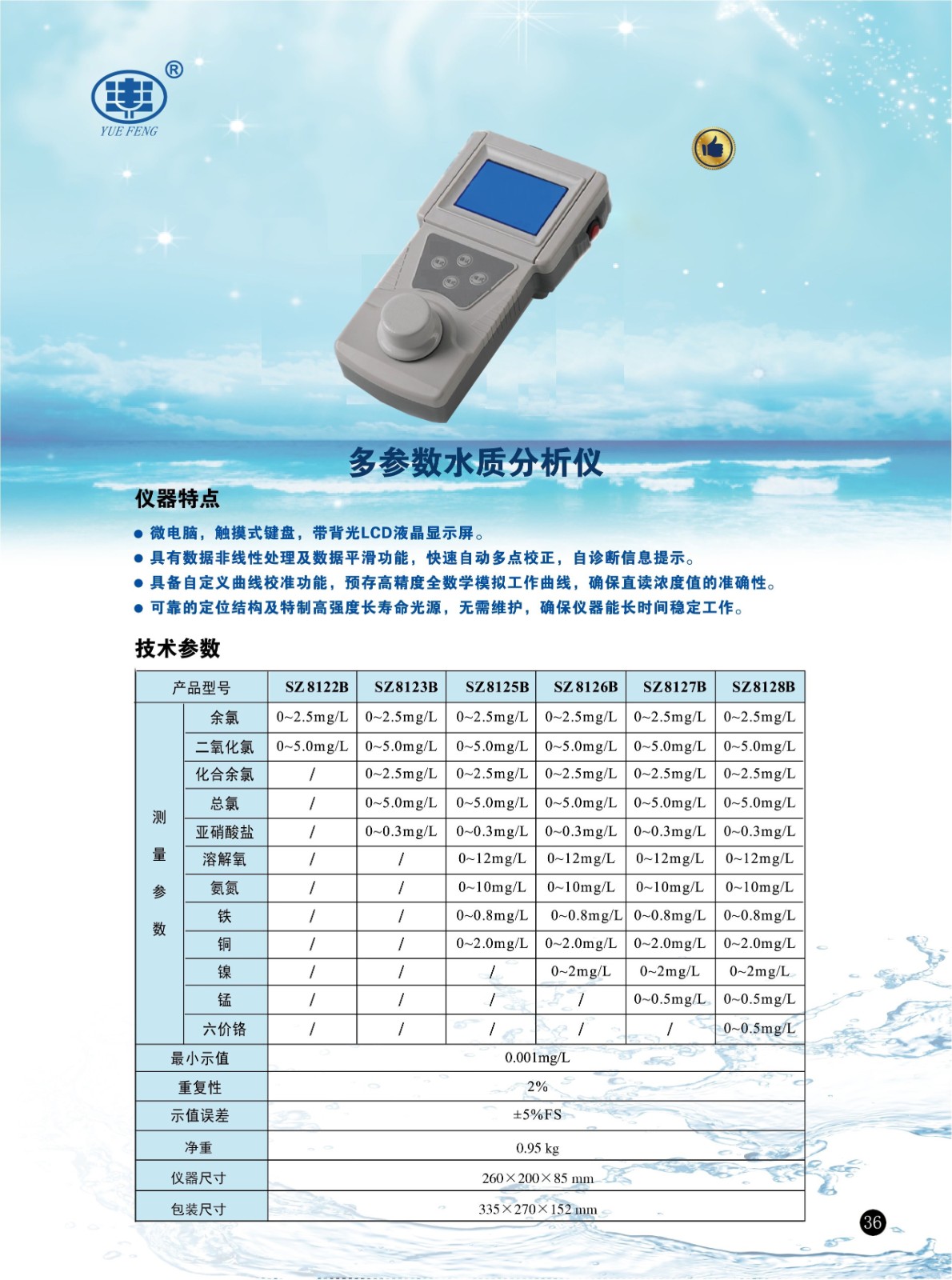 - 商品名稱:上海悅豐便攜式微電腦5參數(shù)水質(zhì)分析儀SZ8123B
