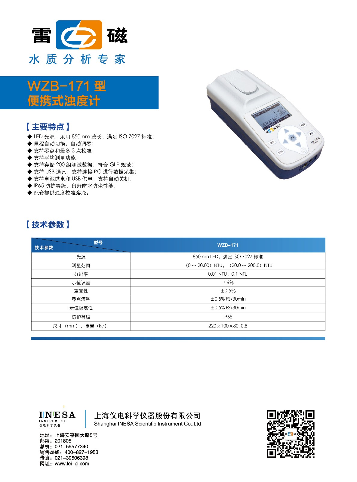 - 標 題: 上海雷磁濁度計 WZB-170