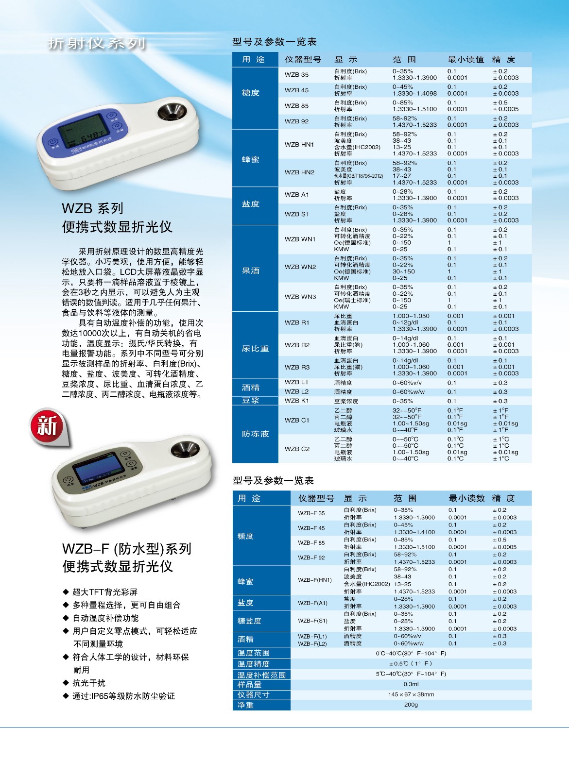 - 關(guān) 鍵 字: 范圍0-45% 1.3330-1.4098 顯示:白利度、折射率 最小讀值:0.1、0.0001 精度:±0.2、±0.0003