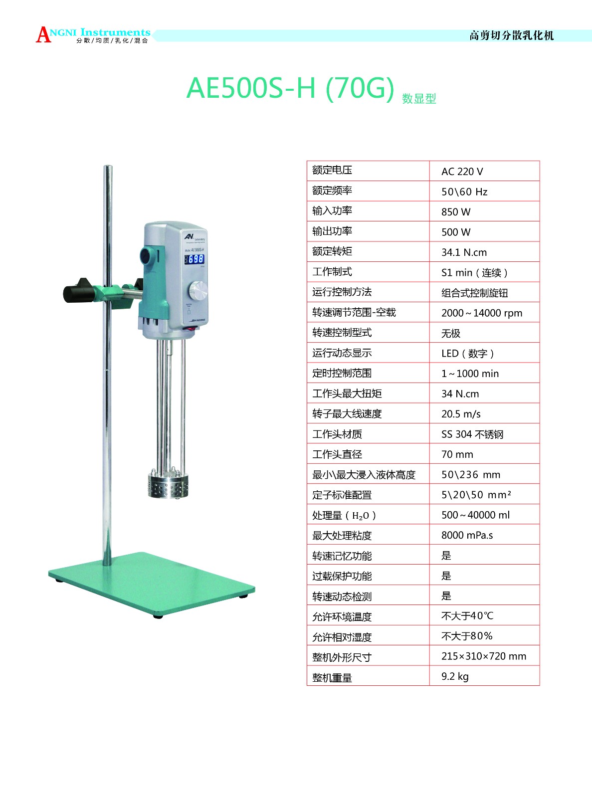 - 關 鍵 字: 空載轉速范圍:2000-14000rpm;處理量(水):40L;乳化機,工作頭規(guī)格:70G,工作頭直徑:70mm,輸出功率:500W 數顯型